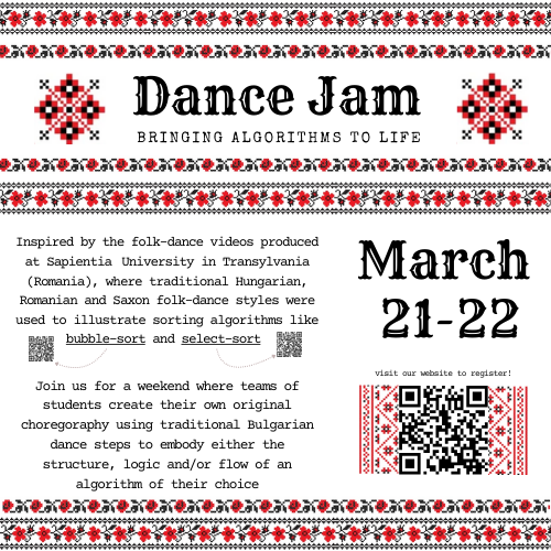 Our jam invites students to create their own original choregoraphy using traditional Bulgarian dance steps to embody either the structure, logic and/or flow of a chosen algorithm.