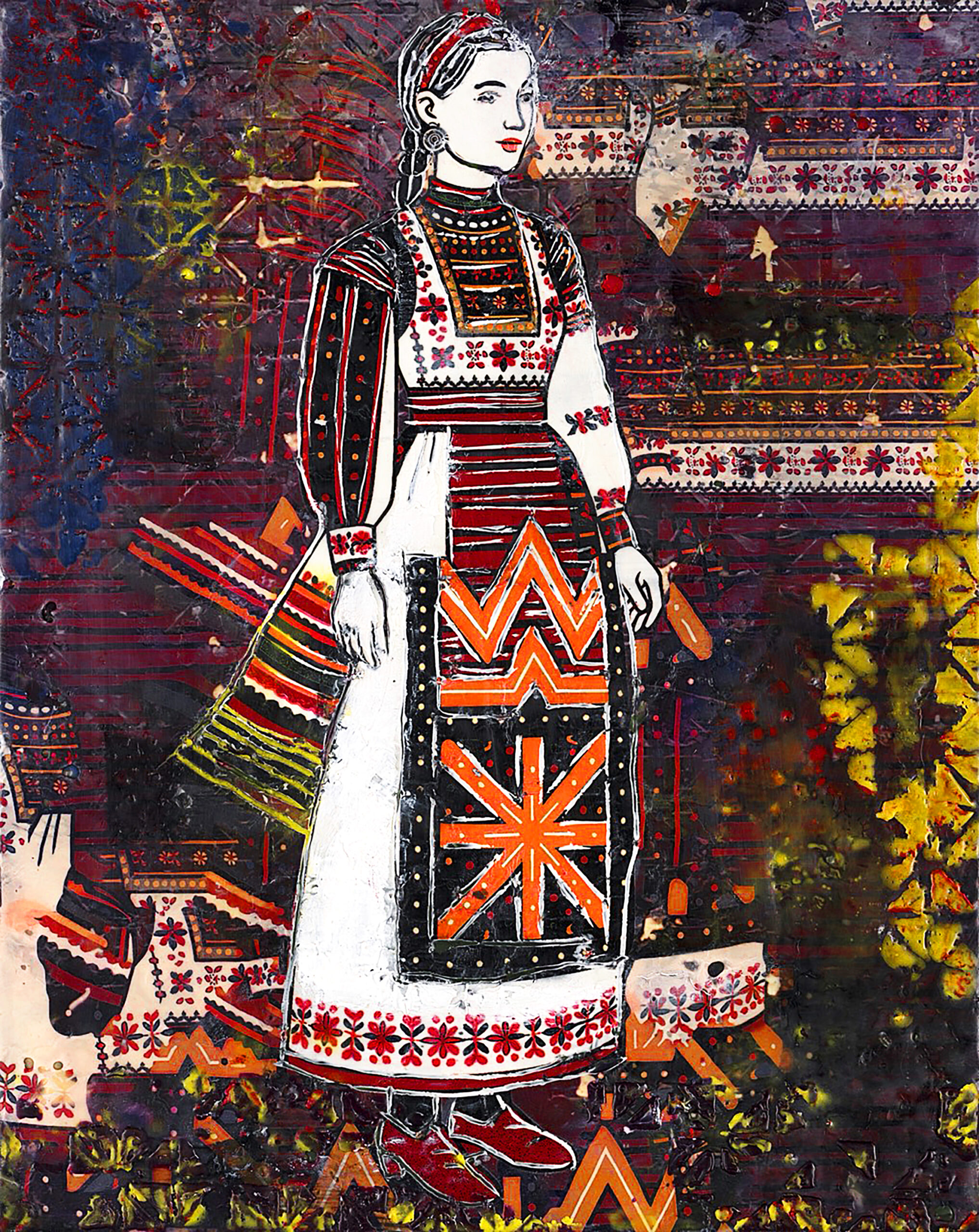 Artwork from the Bulgarian Folk Encaustic Paintings collection of Flame Art Studios